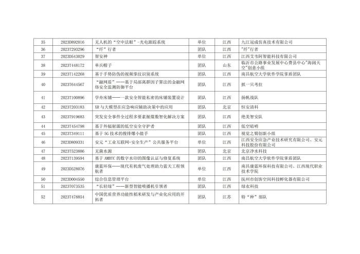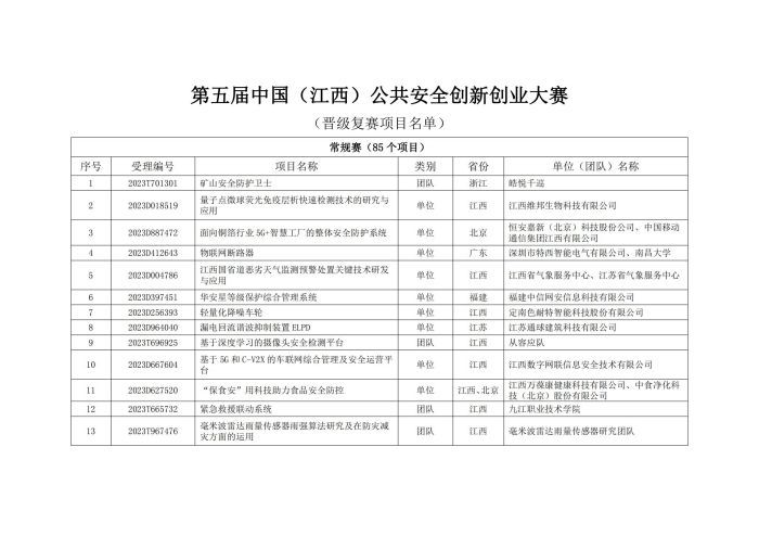 關(guān)于公布第五屆中國(guó)(江西)公共安全創(chuàng)新創(chuàng)業(yè)大賽晉級(jí)復(fù)賽項(xiàng)目名單的通知